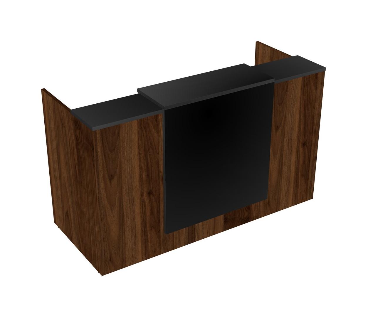 Black Modular Reception Desk With Floating Counter And Wooden Mobile Drawers