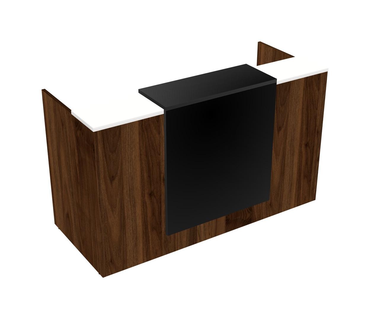 White Modular Reception Desk With Floating Counter And Wooden Mobile Drawers