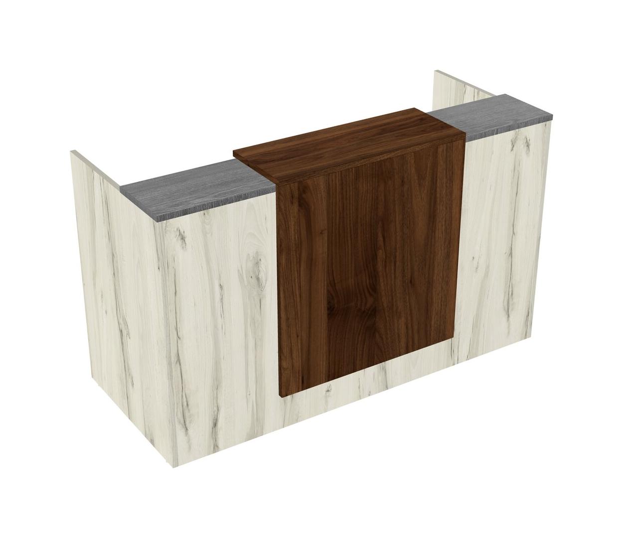 Grey Modular Reception Desk With Floating Counter And Wooden Mobile Drawers