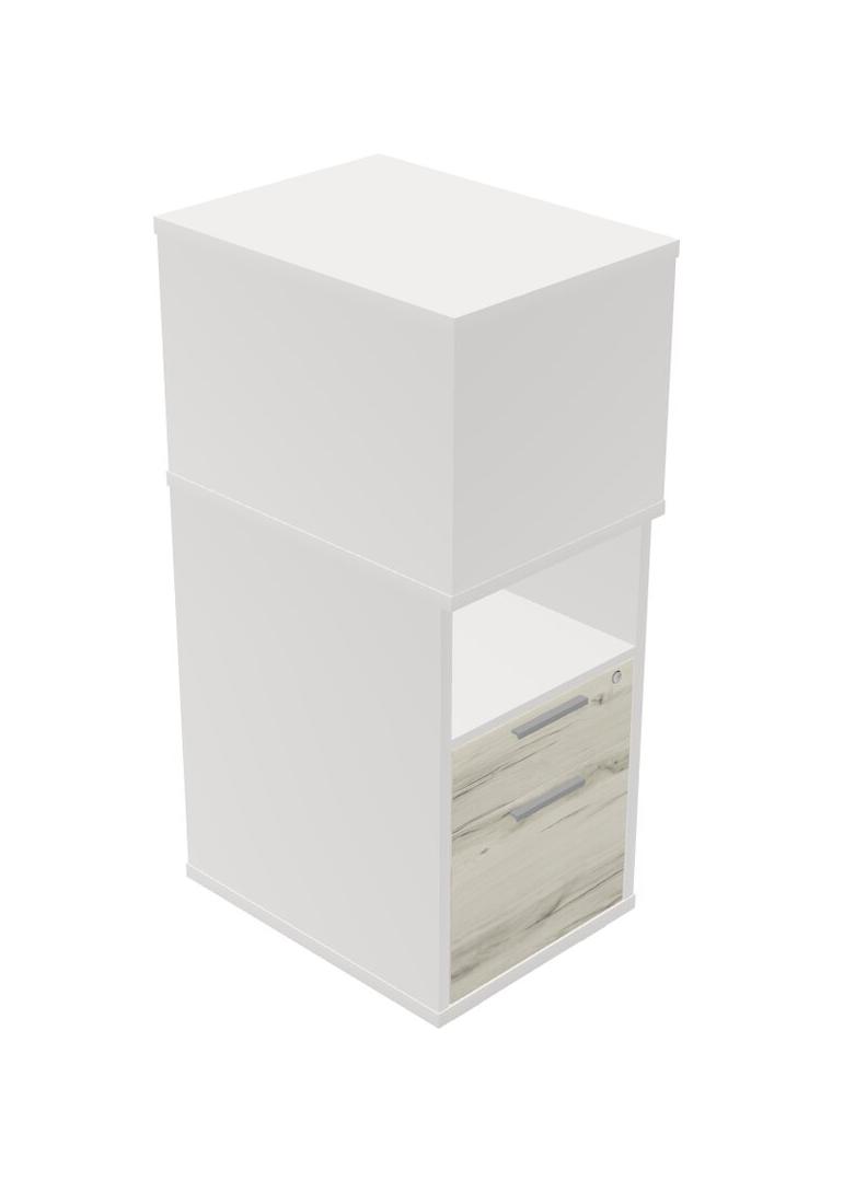 White Desk Storage With Drawers (The Open Shelf Can Be On Either Side)