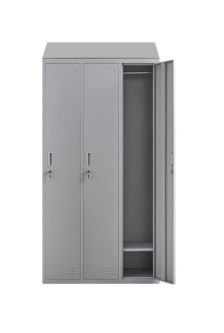 Grey 3 Door Locker With Slopping Top - Foldable Structure - Padlock