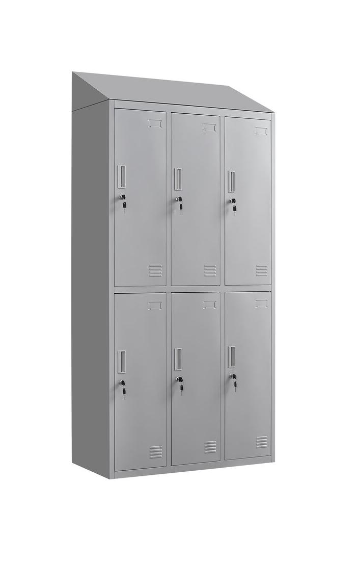 Grey 6 Door Locker With Slopping Top - Foldable Structure - Padlock