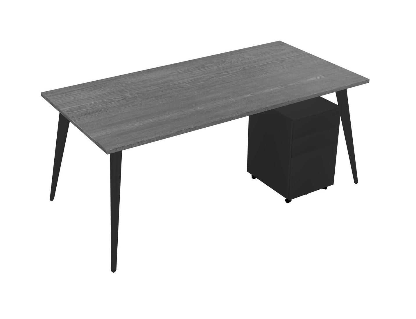 Grey Rectangular Office Desk With Metal Mobile Drawers