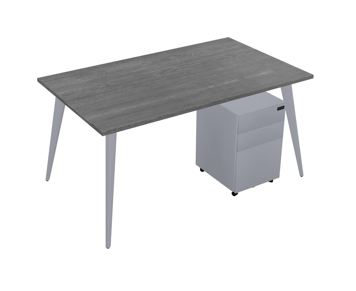 Grey Rectangular Office Desk With Metal Mobile Drawers