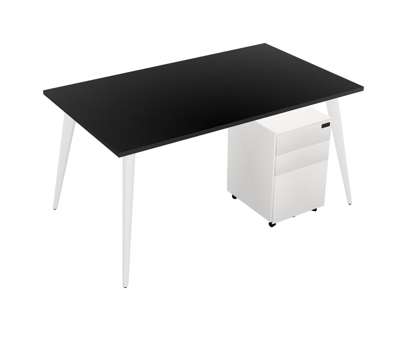Black Rectangular Office Desk With Metal Mobile Drawers