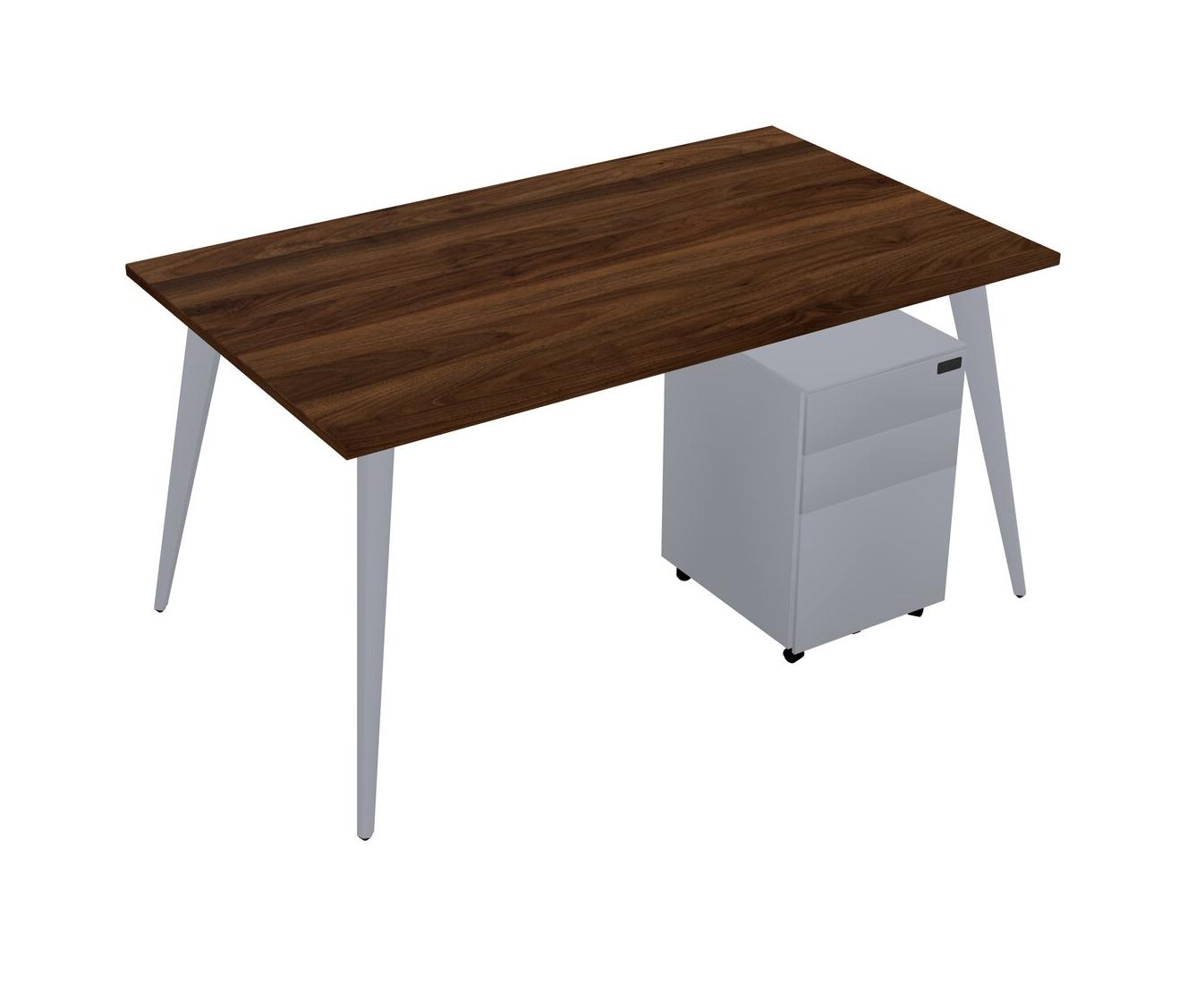 Columbia Walnut Rectangular Office Desk With Metal Mobile Drawers