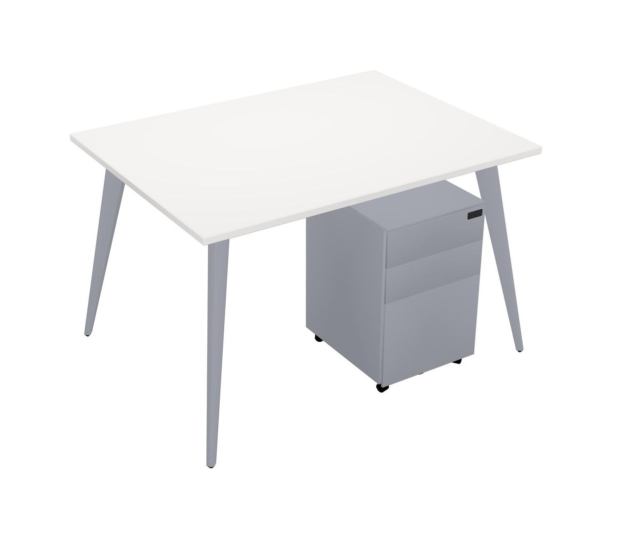 White Rectangular Office Desk With Metal Mobile Drawers