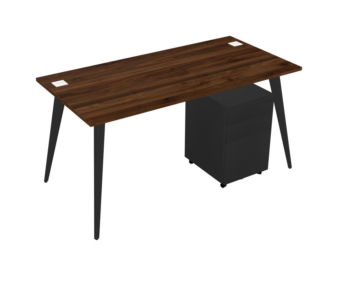 Columbia Walnut Rectangular Office Desk With Metal Mobile Drawers