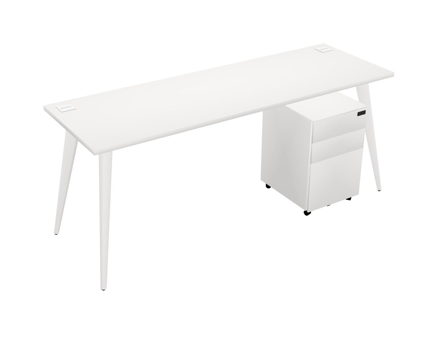 White Rectangular Office Desk With Metal Mobile Drawers