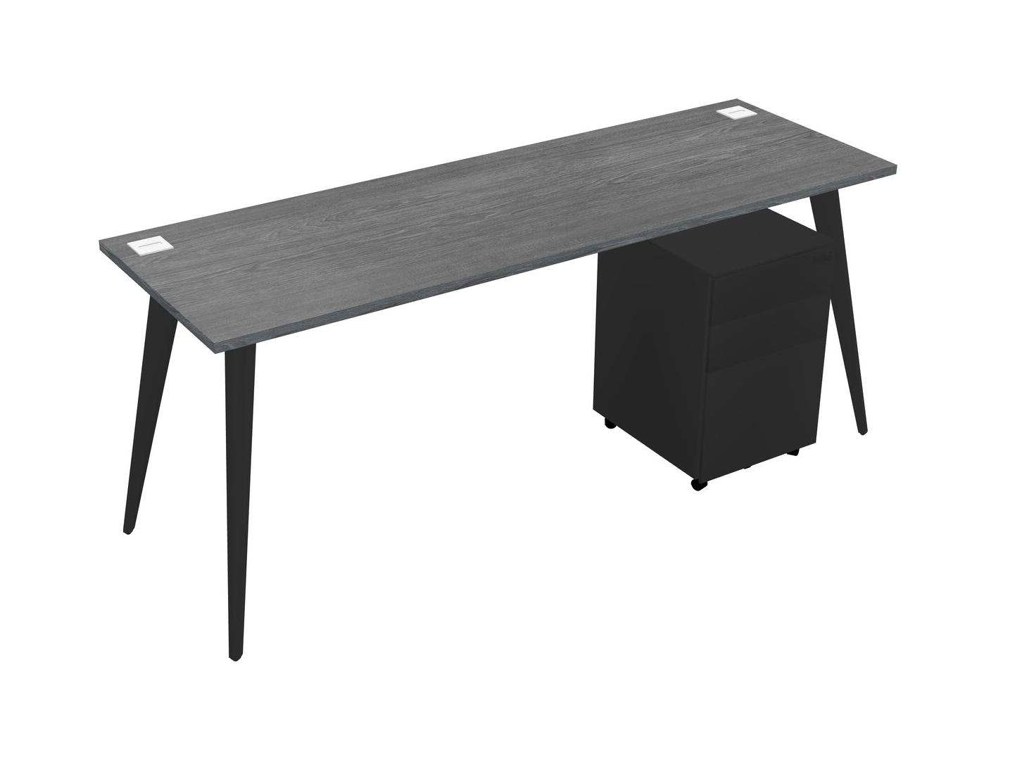 Grey Rectangular Office Desk With Metal Mobile Drawers