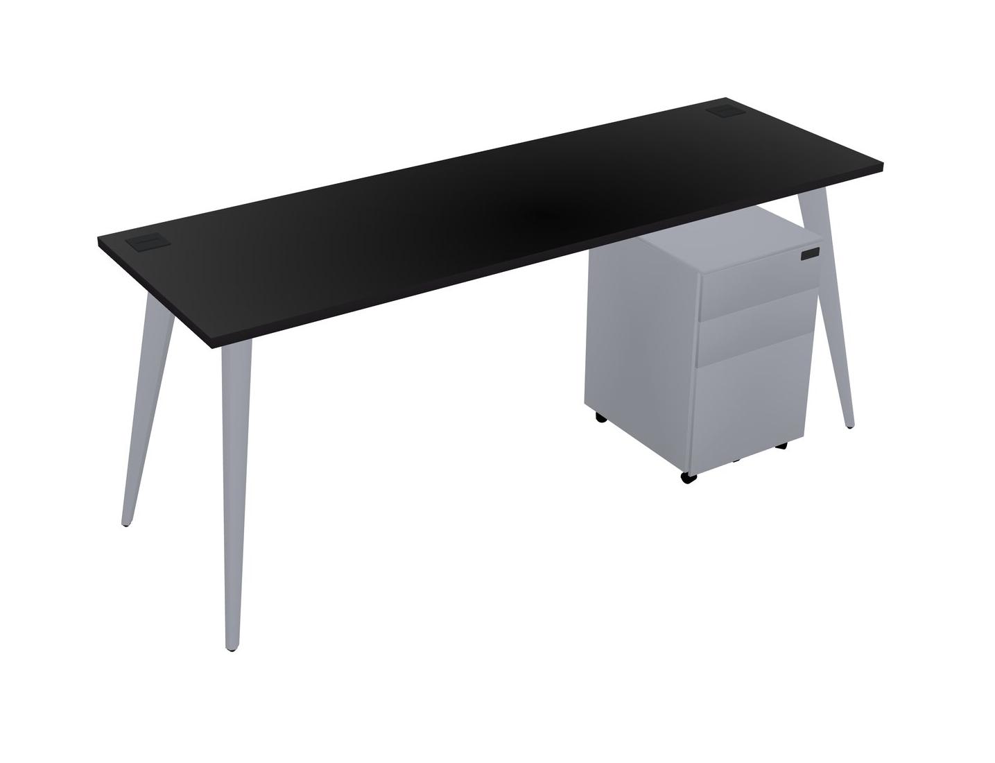Black Rectangular Office Desk With Metal Mobile Drawers