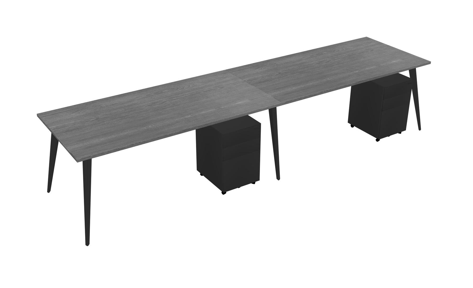 Grey Rectangular Office Desk With Metal Mobile Drawers