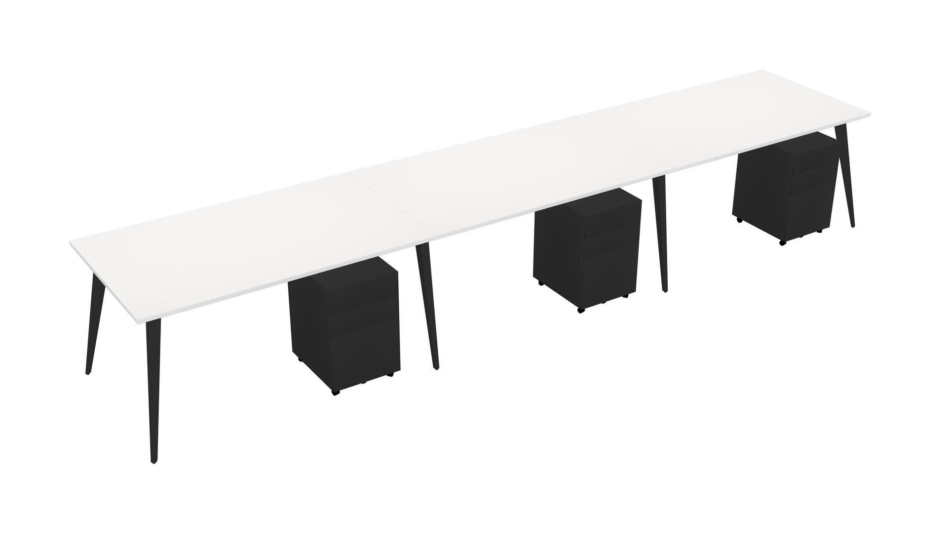 White Rectangular Office Desk With Metal Mobile Drawers