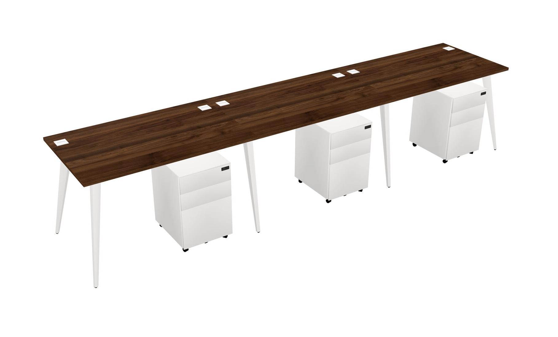 Columbia Walnut Rectangular Office Desk With Metal Mobile Drawers