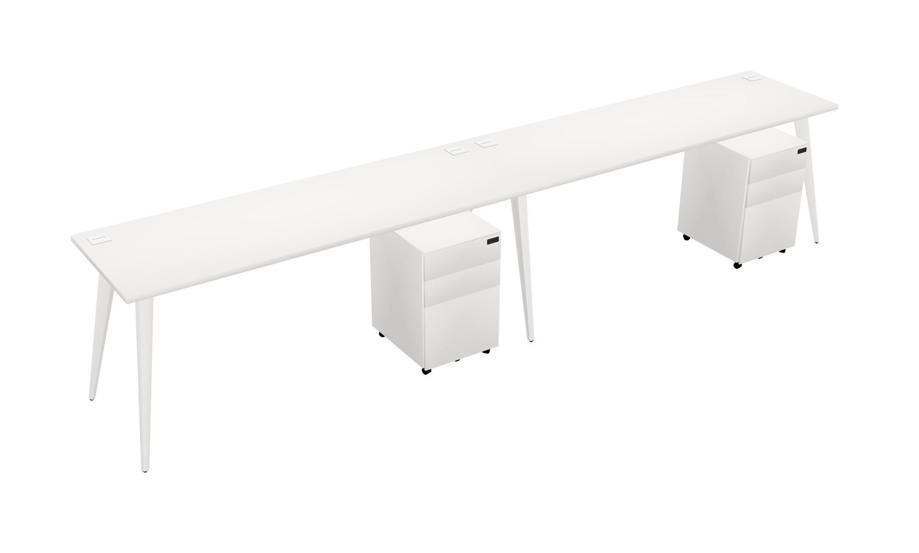 White Rectangular Office Desk With Metal Mobile Drawers