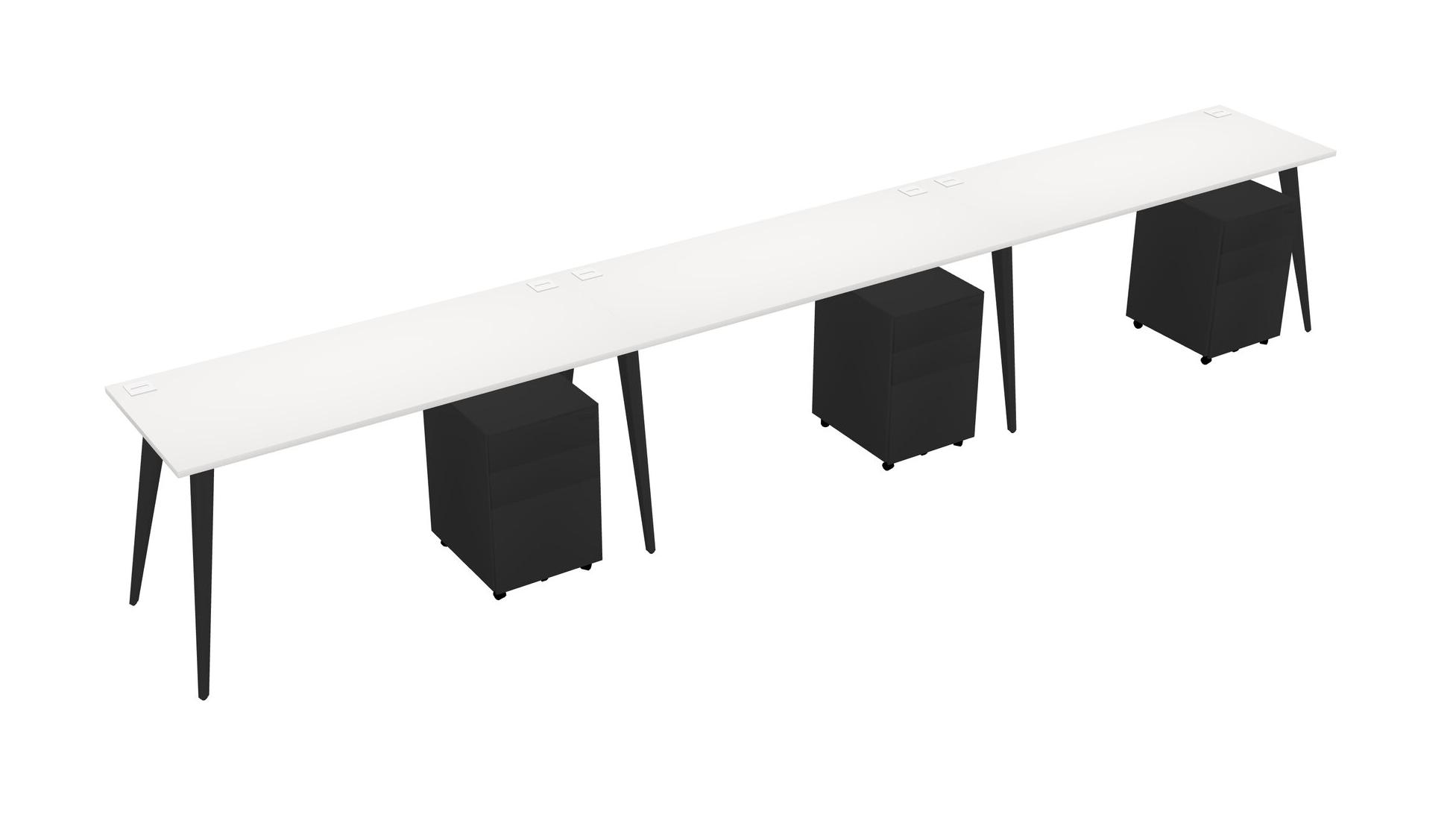 White Rectangular Office Desk With Metal Mobile Drawers
