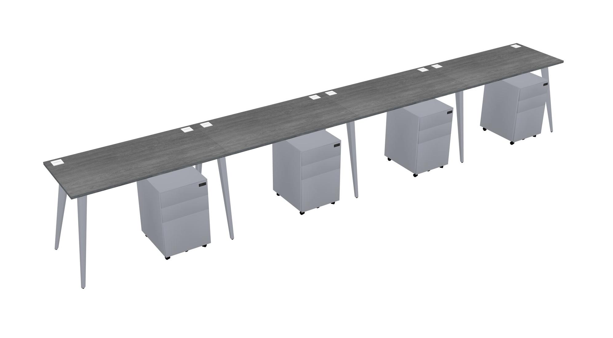 Grey Rectangular Office Desk With Metal Mobile Drawers