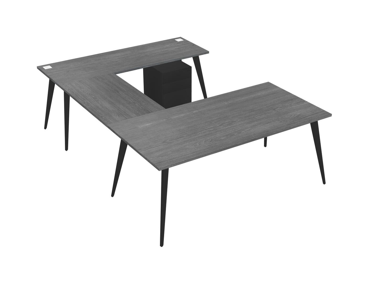 Grey U-shaped Office Desk Plus Metal Mobile Drawers