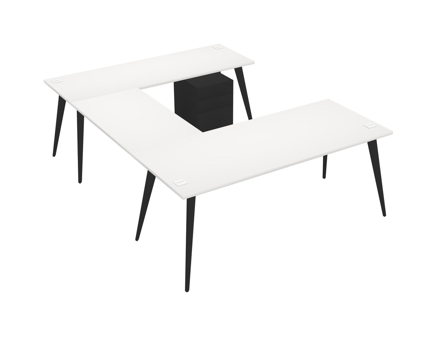 White U-shaped Office Desk Plus Metal Mobile Drawers