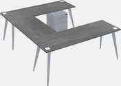 Grey U-shaped Office Desk Plus Metal Mobile Drawers