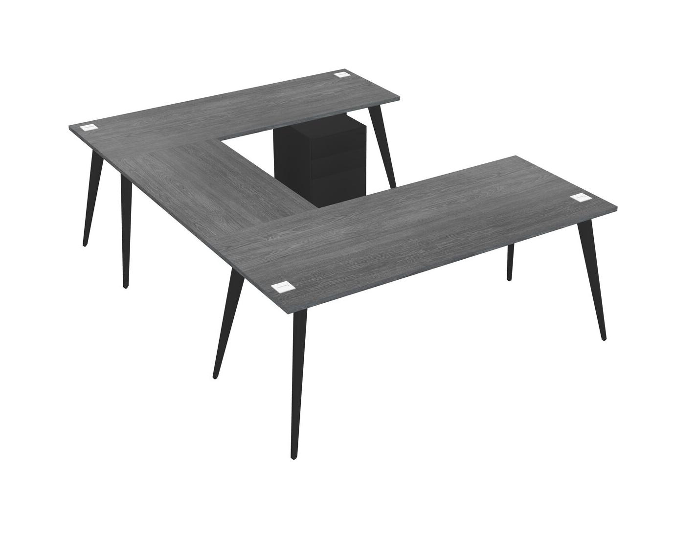 Grey U-shaped Office Desk Plus Metal Mobile Drawers
