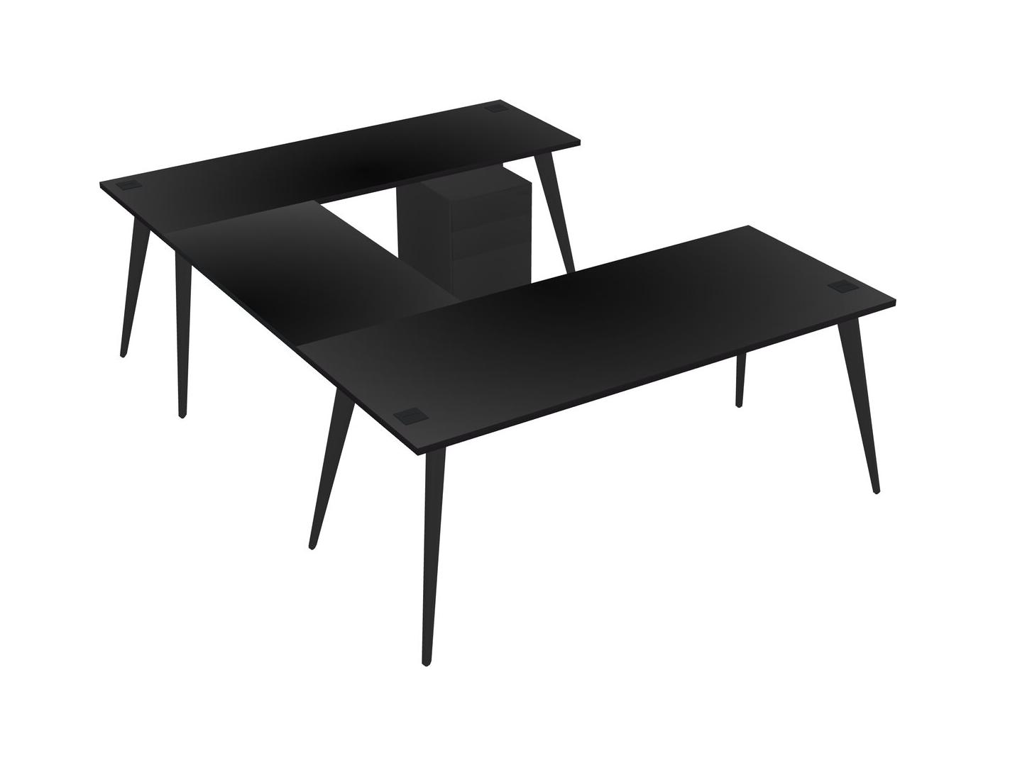 Black U-shaped Office Desk Plus Metal Mobile Drawers
