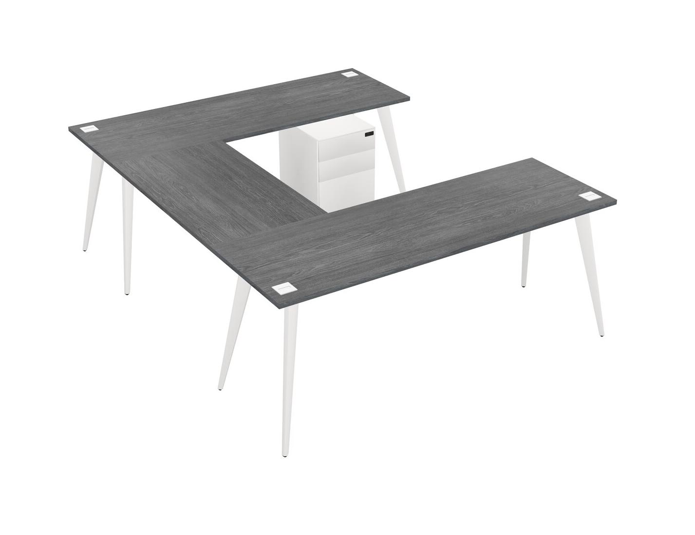 Grey U-shaped Office Desk Plus Metal Mobile Drawers