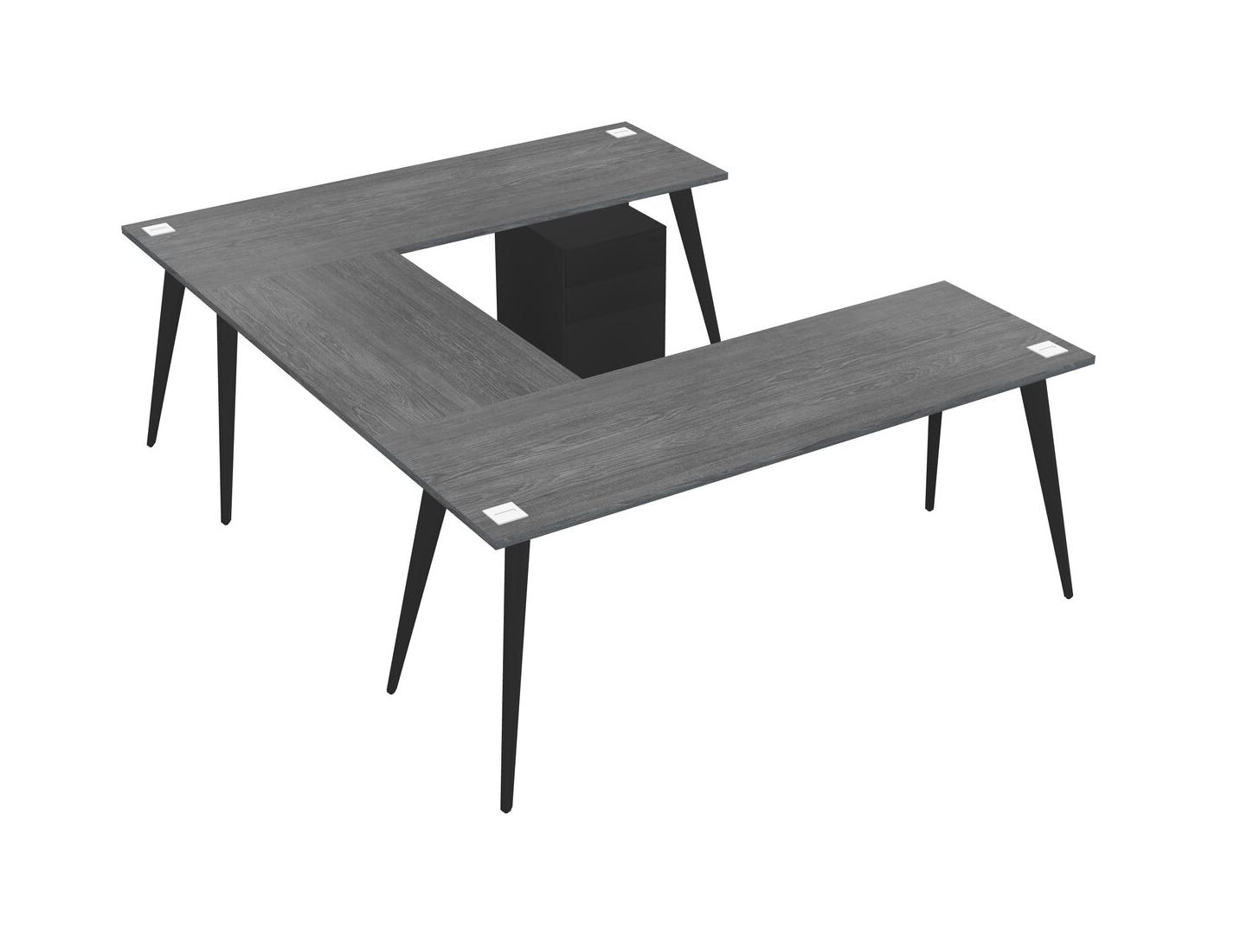 Grey U-shaped Office Desk Plus Metal Mobile Drawers