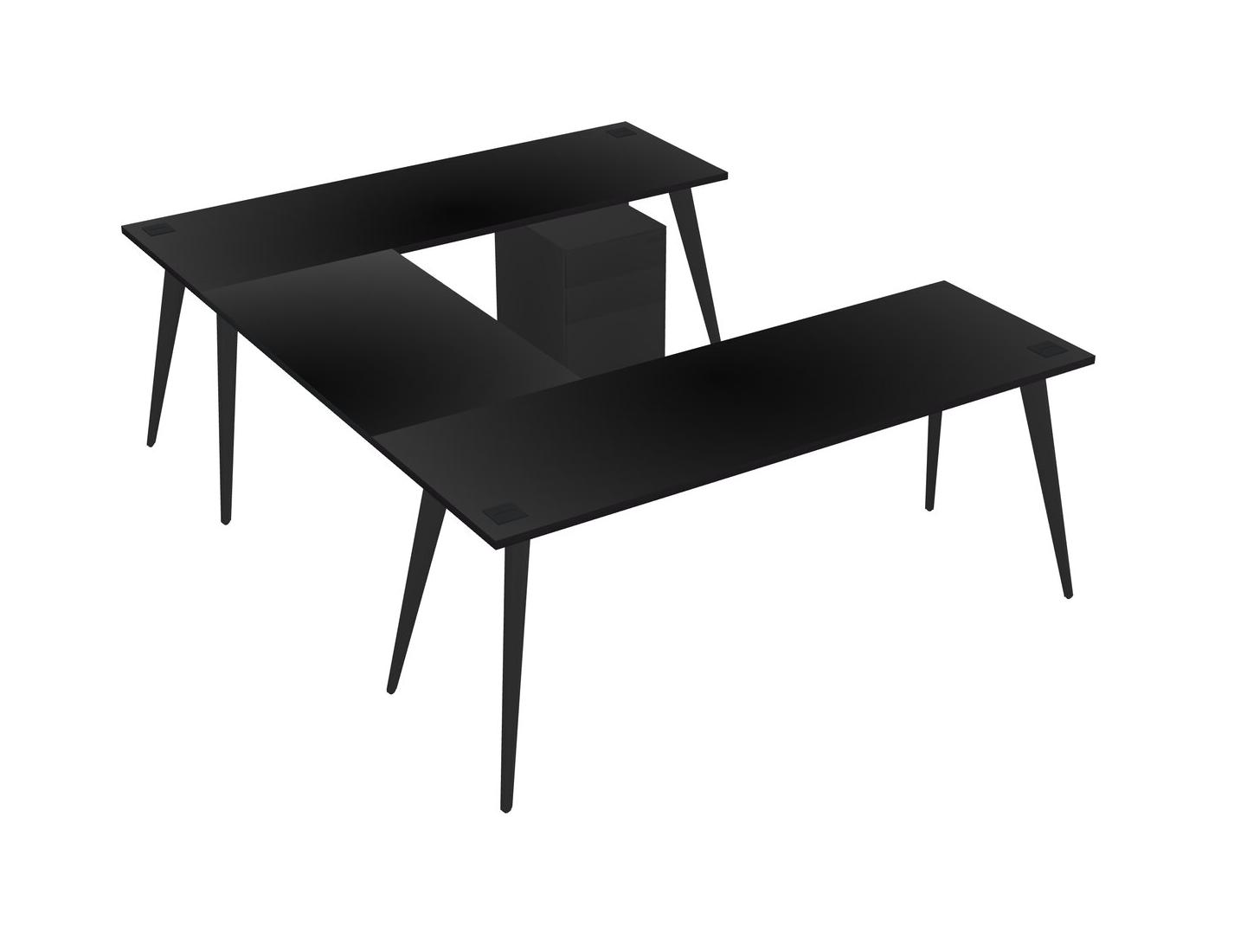 Black U-shaped Office Desk Plus Metal Mobile Drawers