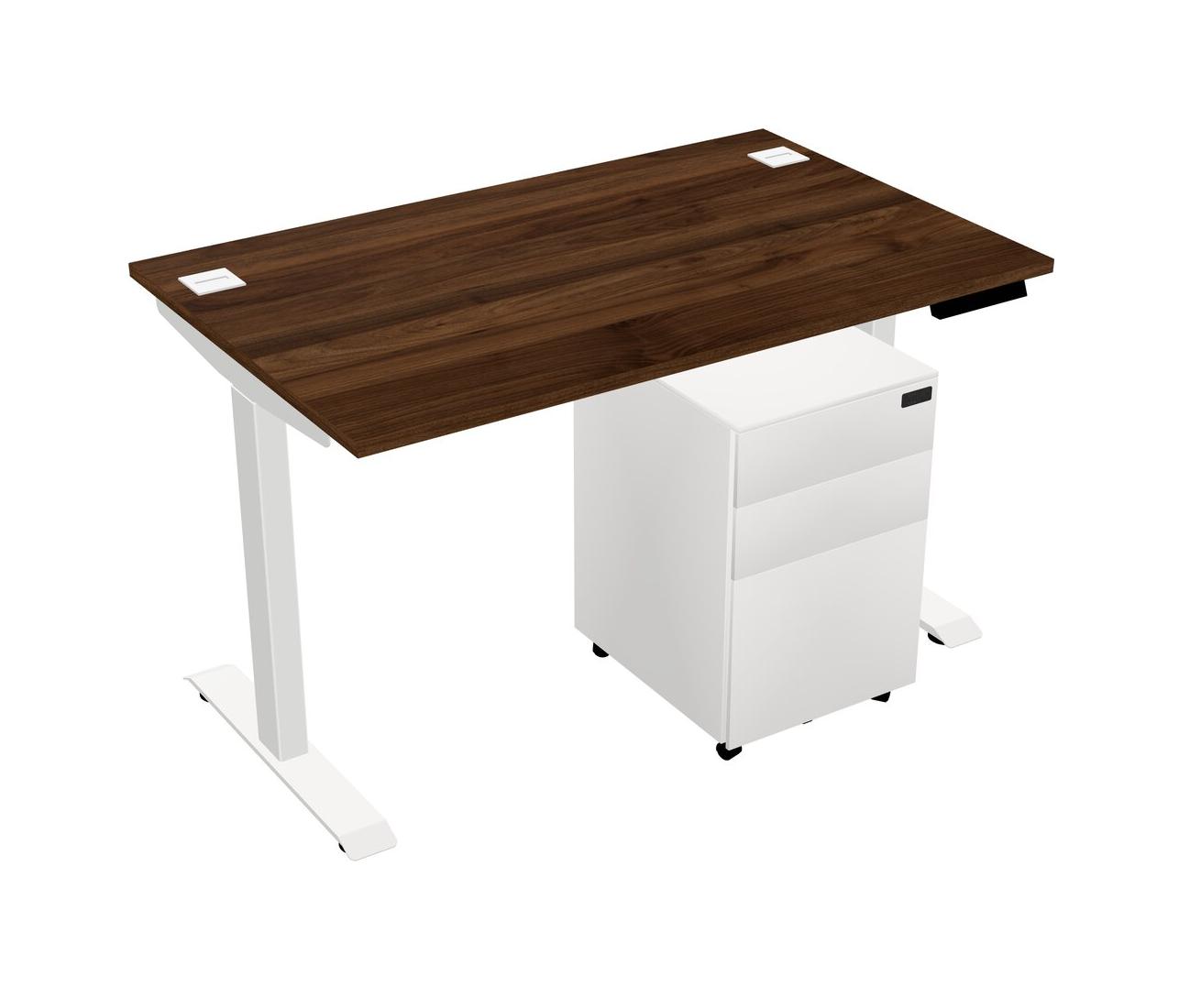 Columbia Walnut Single Motor Electric Height Adjustable Desk With Metal Mobile Drawers