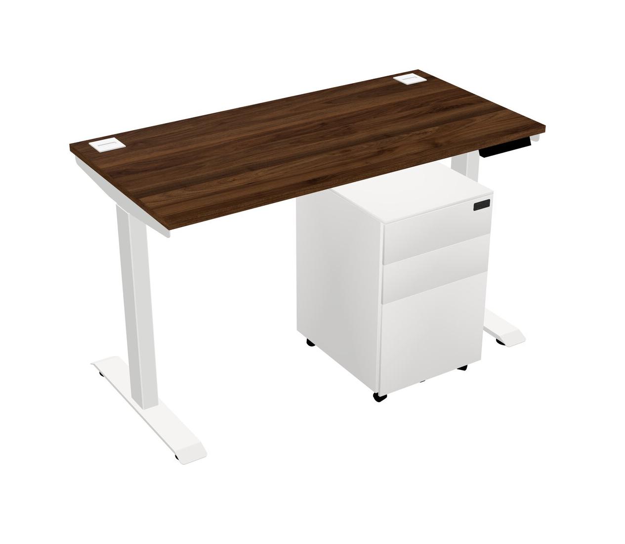Columbia Walnut Single Motor Electric Height Adjustable Desk With Metal Mobile Drawers