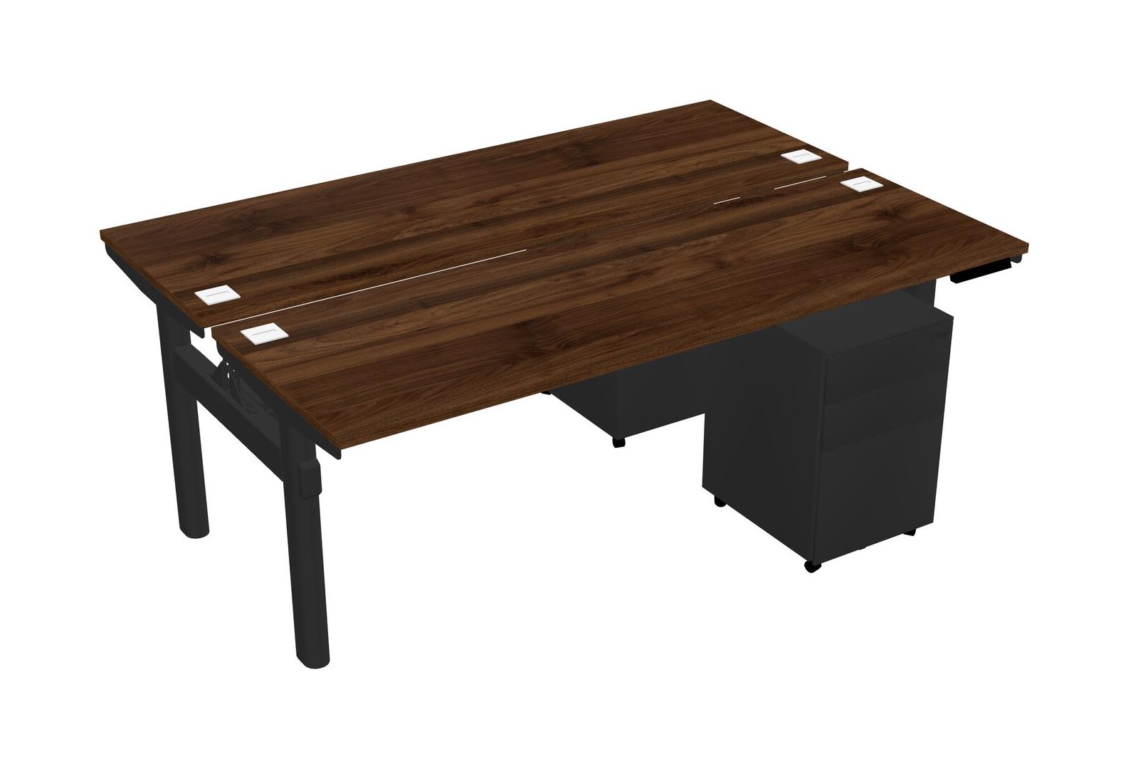 Columbia Walnut Shared Dual Motor Electric Height Adjustable Desk With Metal Mobile Drawers