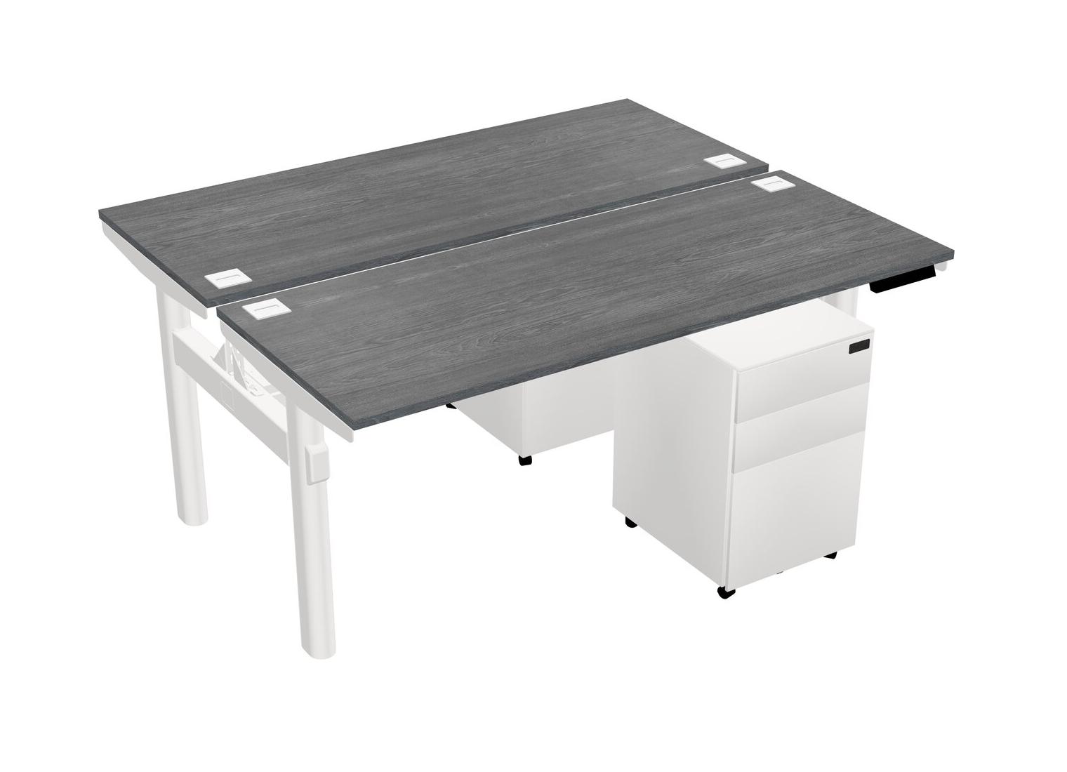Grey Shared Dual Motor Electric Height Adjustable Desk With Metal Mobile Drawers