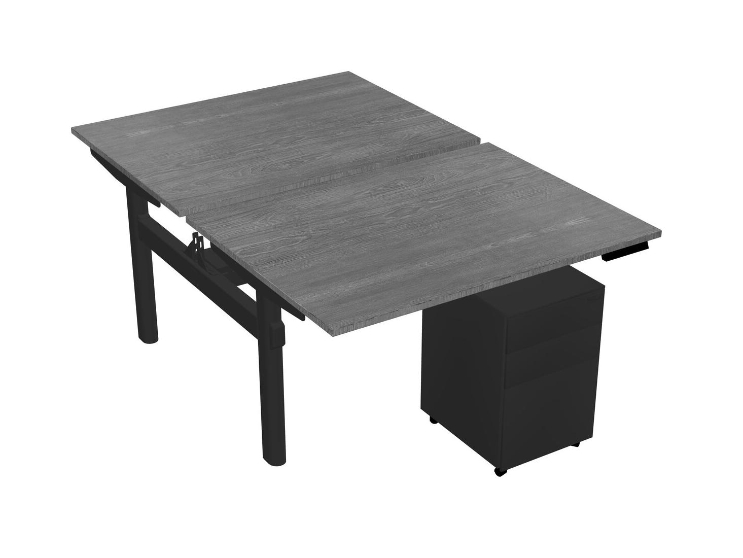 Grey Shared Dual Motor Electric Height Adjustable Desk With Metal Mobile Drawers