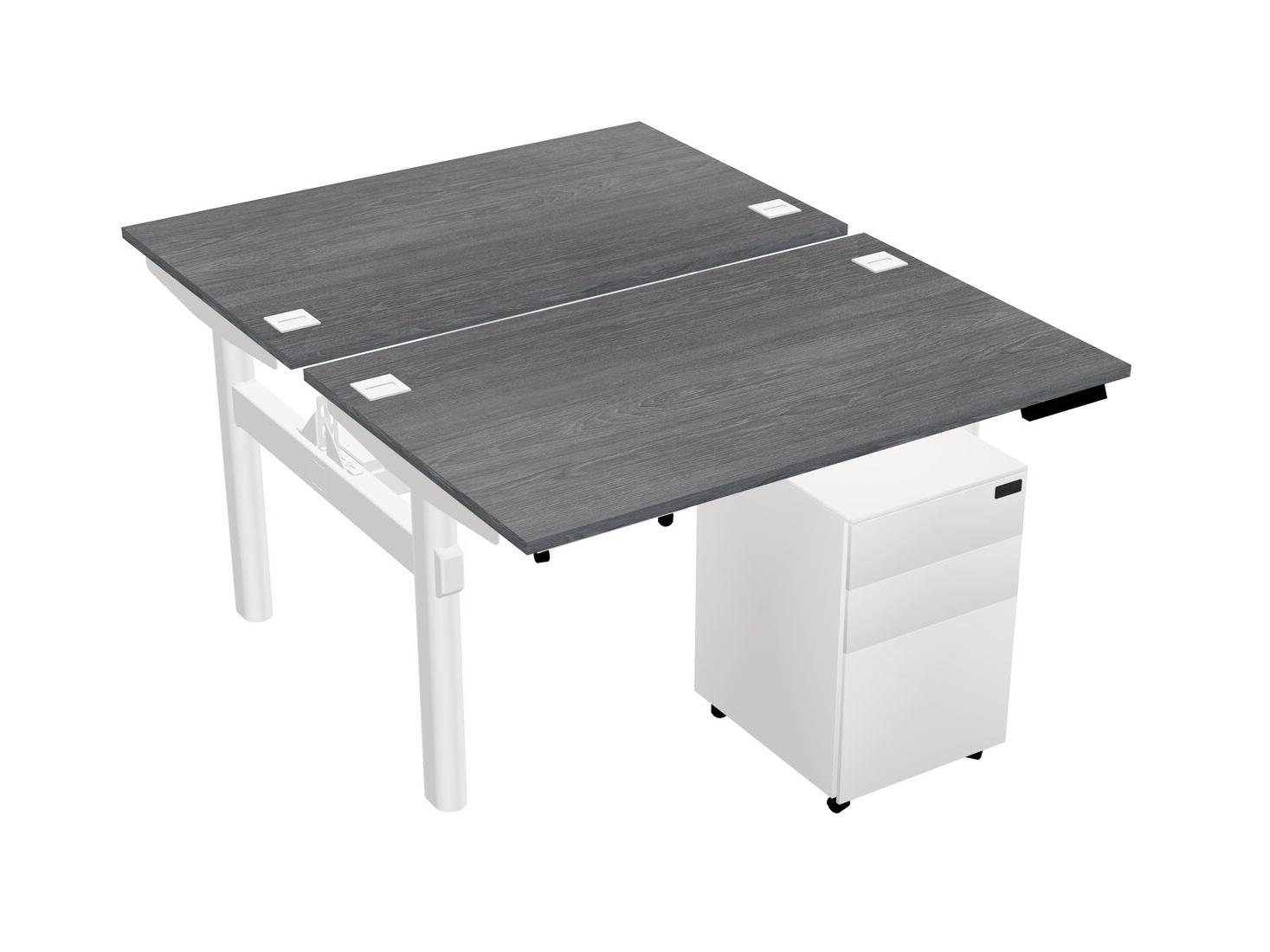 Grey Shared Dual Motor Electric Height Adjustable Desk With Metal Mobile Drawers
