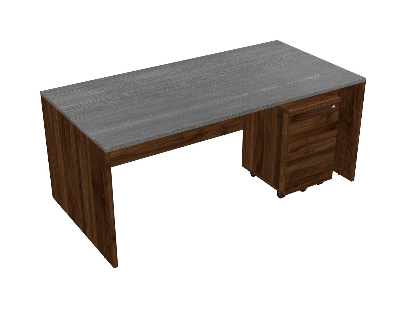 Grey Rectangular Office Desk Plus Columbia Walnut Wooden Mobile Drawers