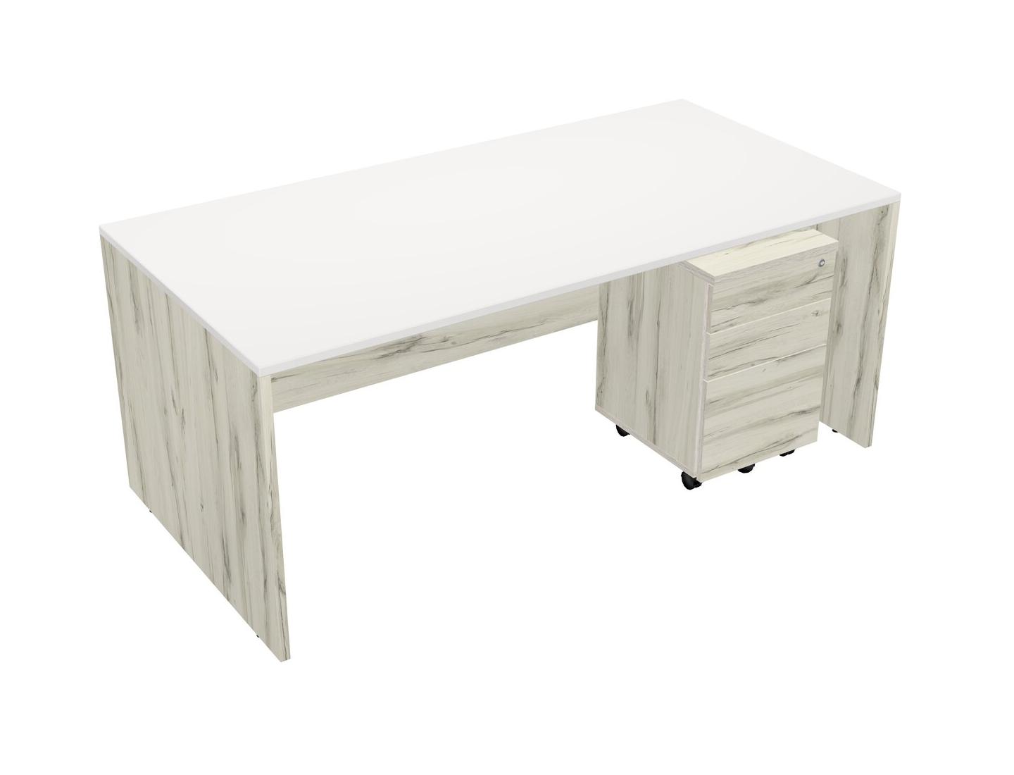 White Rectangular Office Desk Plus Heinne Holz Wooden Mobile Drawers