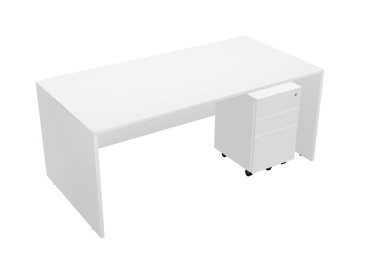 White Rectangular Office Desk Plus White Wooden Mobile Drawers