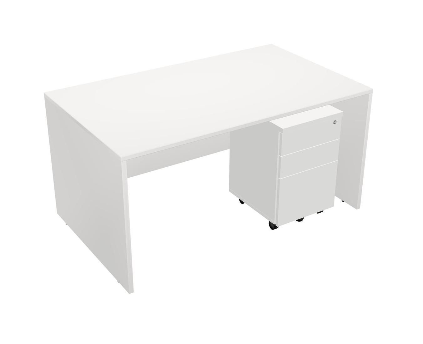 White Rectangular Office Desk Plus White Wooden Mobile Drawers