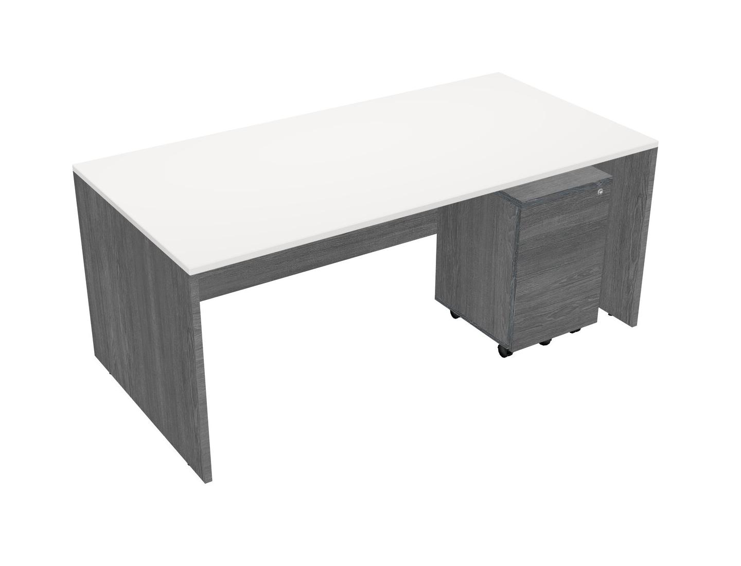 White Rectangular Office Desk Plus Grey Wooden Mobile Drawers
