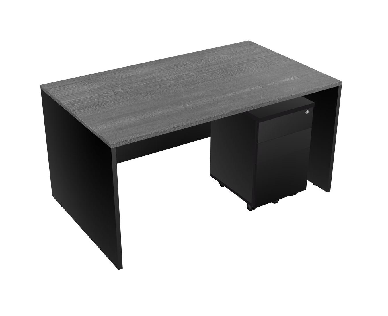 Grey Rectangular Office Desk Plus Black Wooden Mobile Drawers