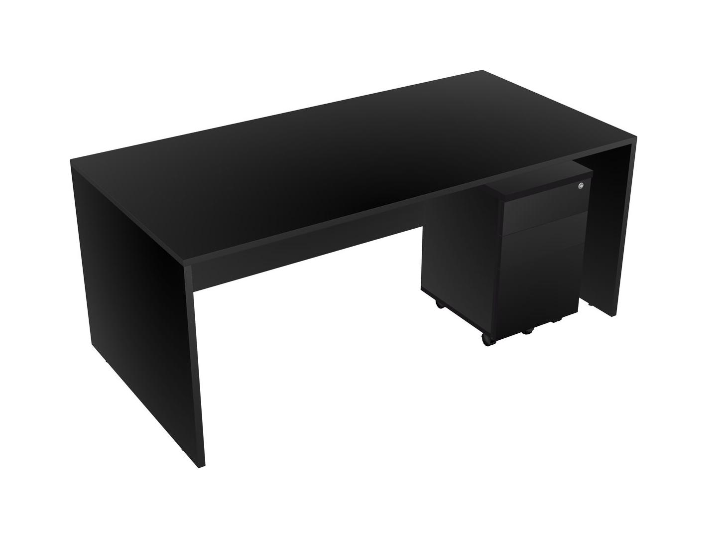 Black Rectangular Office Desk Plus Black Wooden Mobile Drawers