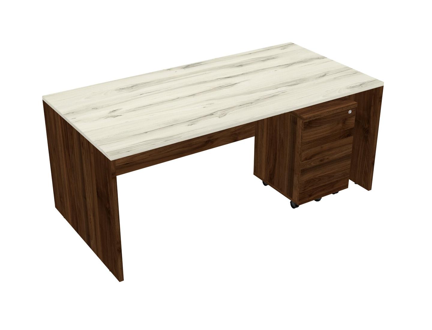 Heinne Holz Rectangular Office Desk Plus Columbia Walnut Wooden Mobile Drawers