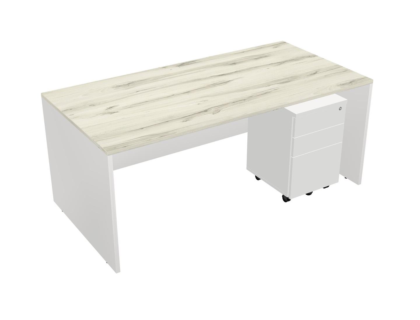 Heinne Holz Rectangular Office Desk Plus White Wooden Mobile Drawers