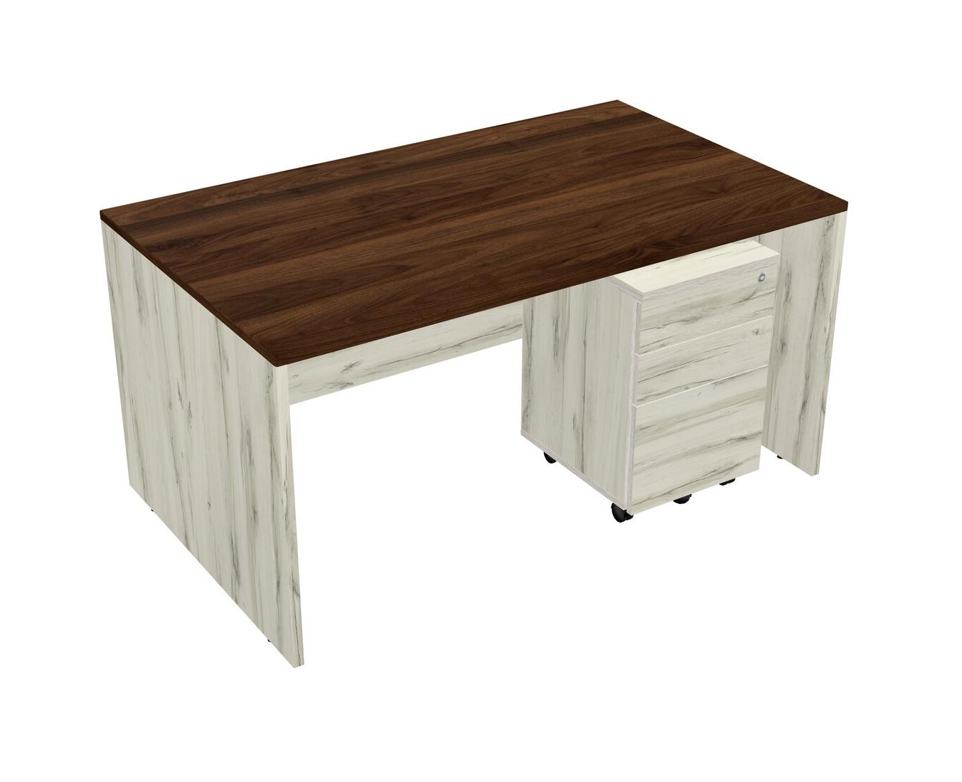 Columbia Walnut Rectangular Office Desk Plus Heinne Holz Wooden Mobile Drawers