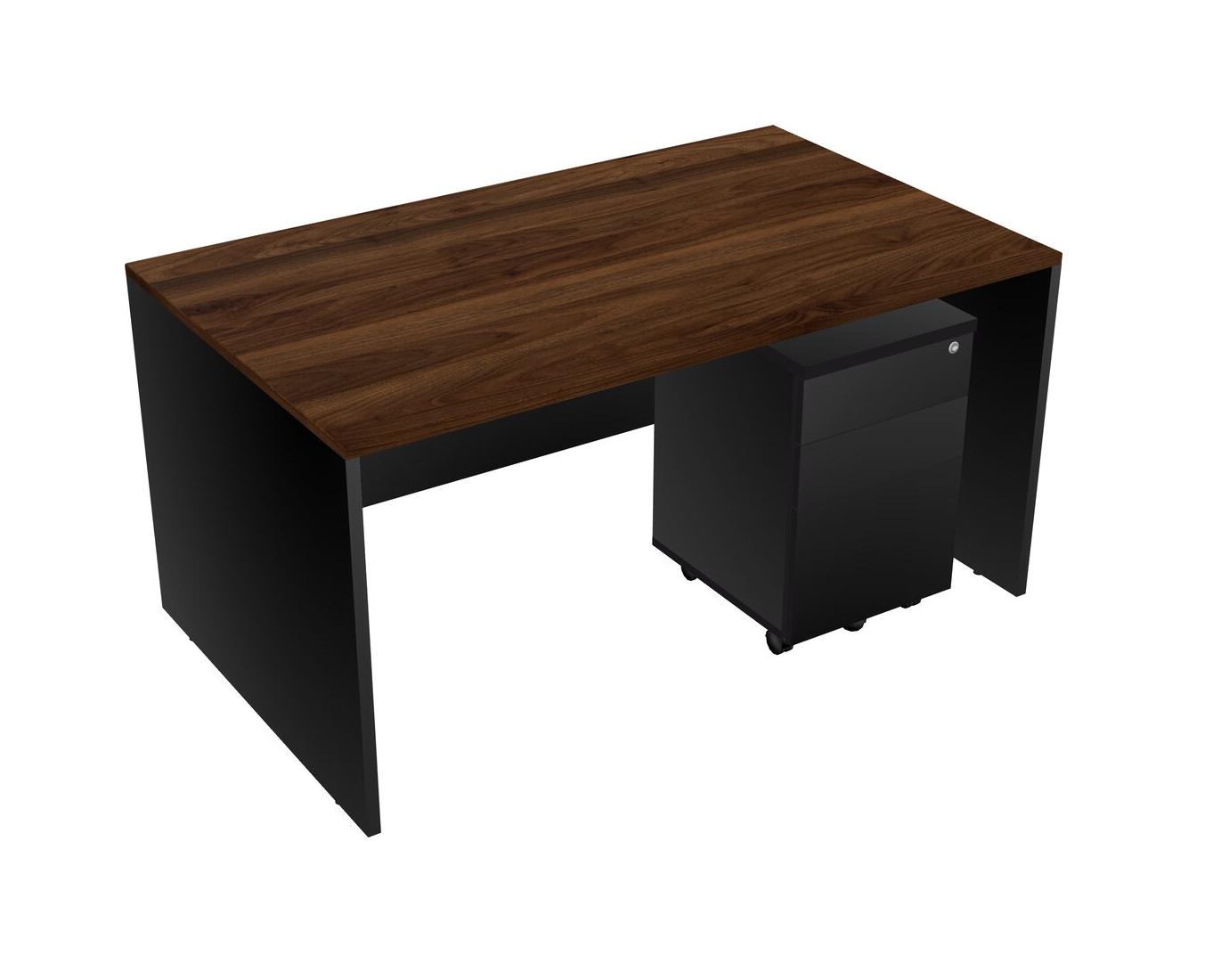 Columbia Walnut Rectangular Office Desk Plus Black Wooden Mobile Drawers