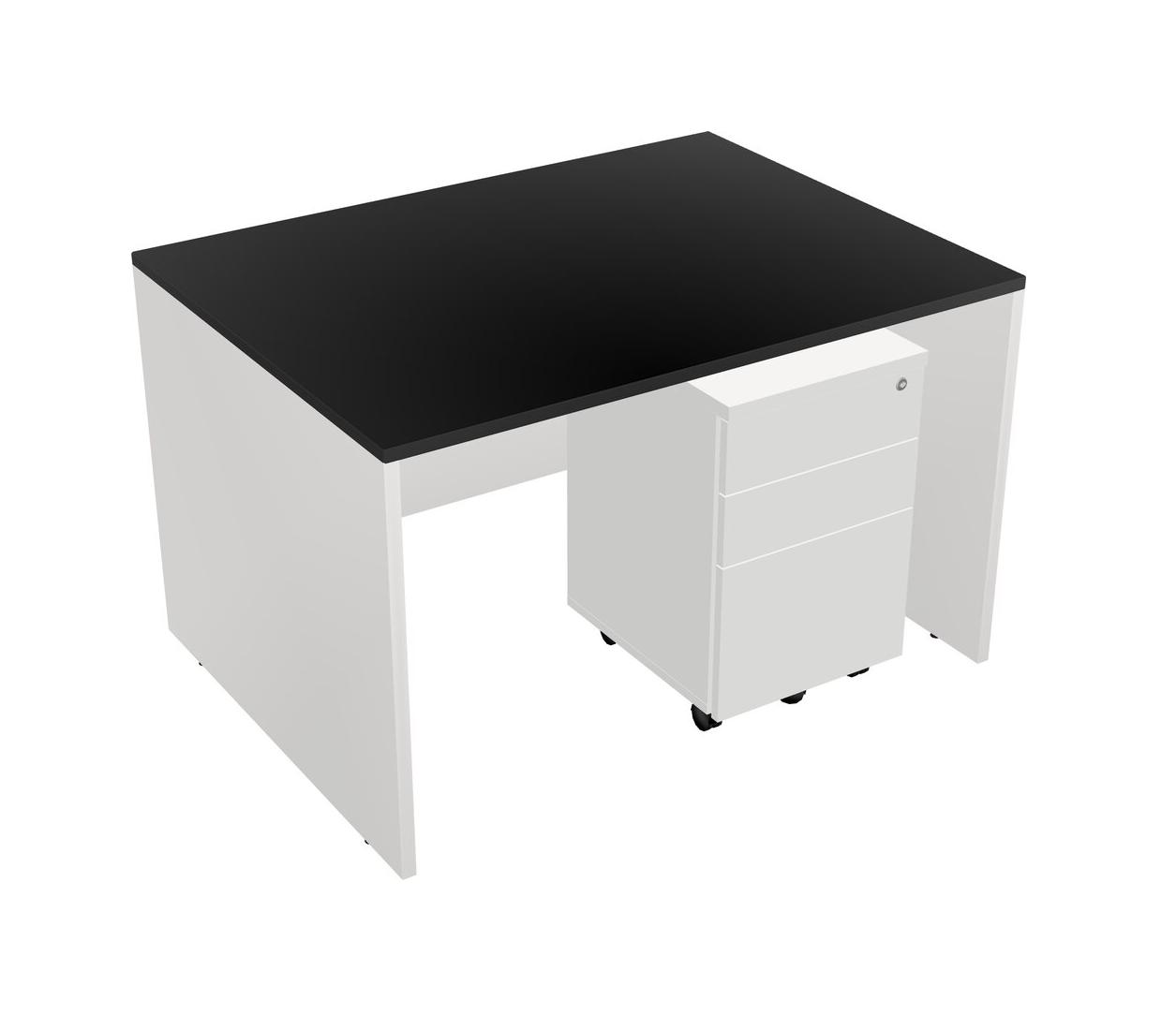 Black Rectangular Office Desk Plus White Wooden Mobile Drawers