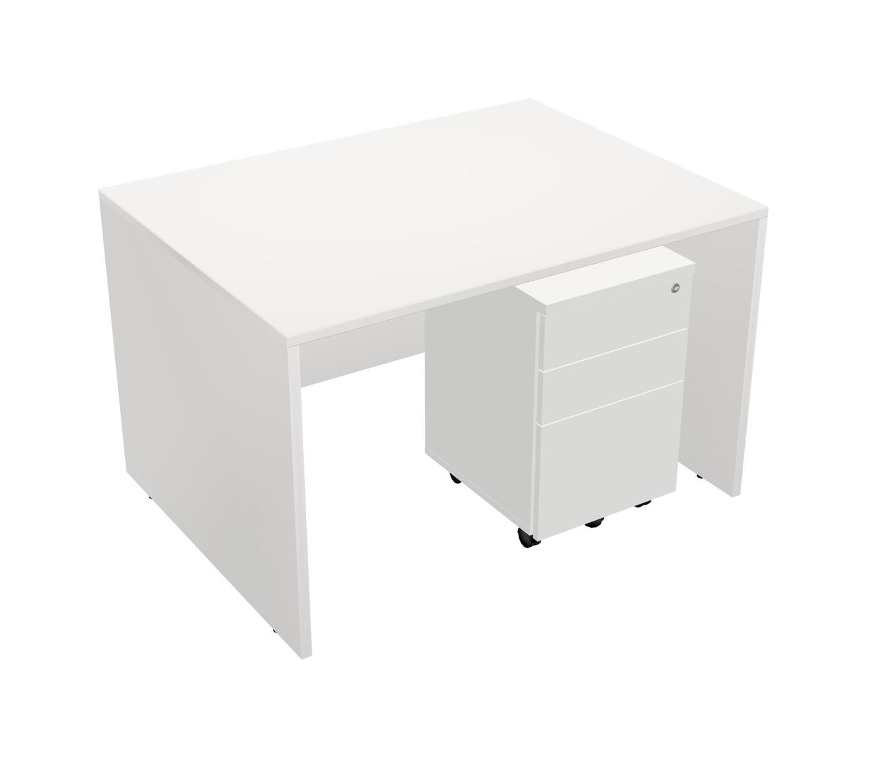 White Rectangular Office Desk Plus White Wooden Mobile Drawers