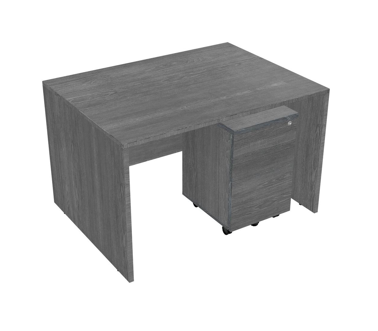 Grey Rectangular Office Desk Plus Grey Wooden Mobile Drawers