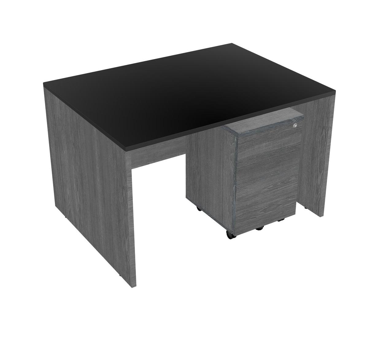 Black Rectangular Office Desk Plus Grey Wooden Mobile Drawers